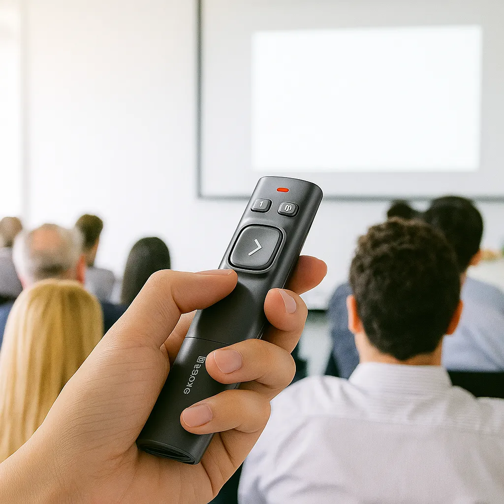 دیگه لازم نیست کنار لپتاپ بمونی — فقط با یه کلیک اسلاید رو عوض کن، صدا رو کم و زیاد کن یا صفحه رو تاریک کن تا توجه همه برگرده به تو.